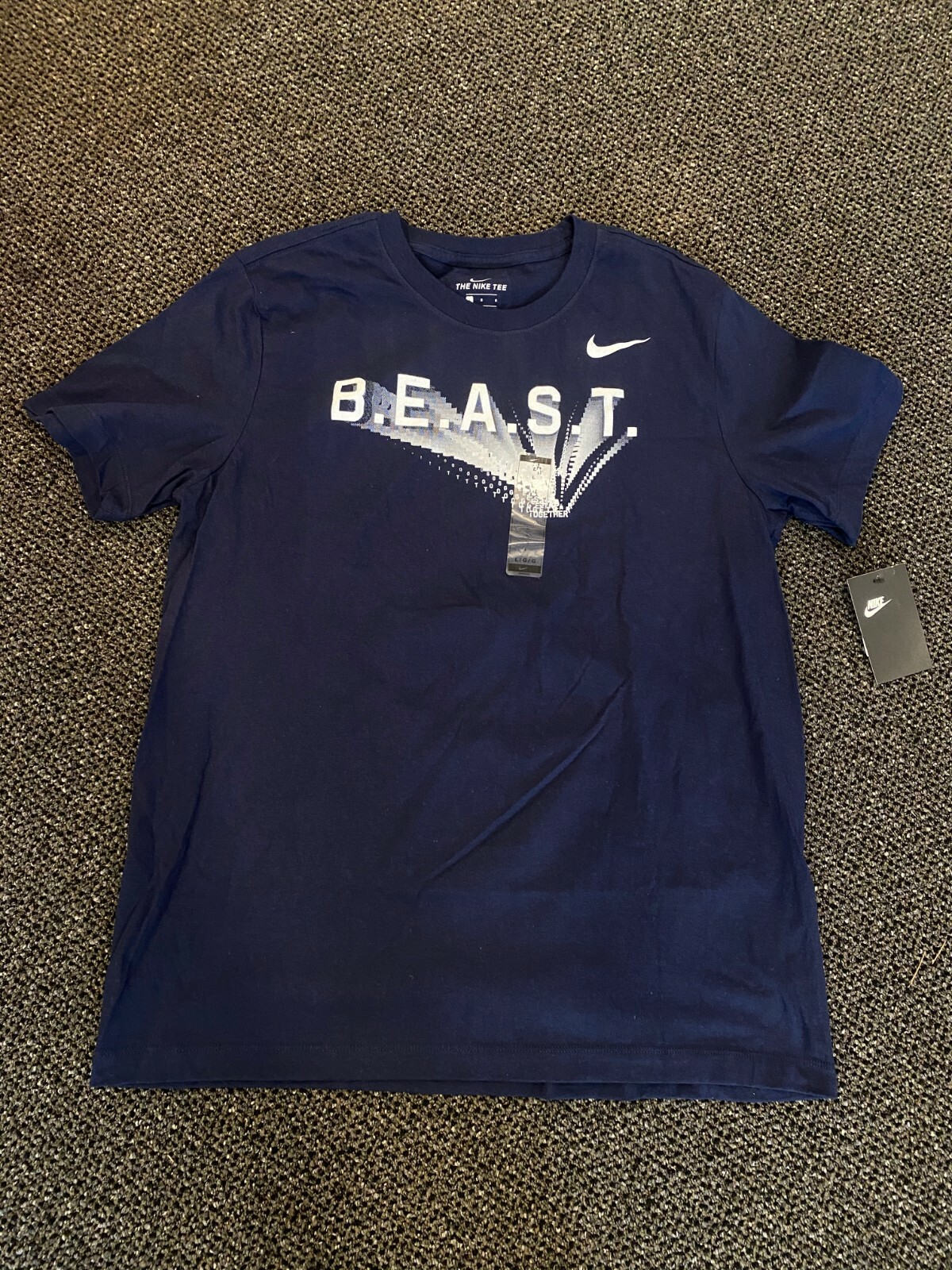 Shop Mens Nike Black Gray Size L Tees - Short Sleeve at a discounted price at Poshmark. Mens Nike Beast Tee. 26 Long in front 29 Long in back.